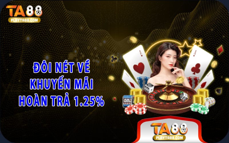 Khuyến mãi hoàn trả 1.25% hiểu đơn giản chính là việc trang game sẽ tiến hành hoàn lại 1.25% tổng tiền cho thành viên. Chúng còn được gọi với cái tên khác như hoa hồng cược.
